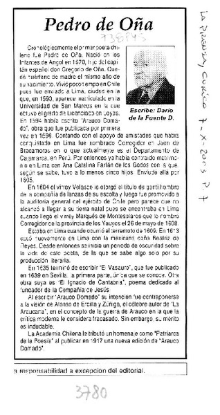 Pedro de Oña [artículo] Darío de la Fuente D.