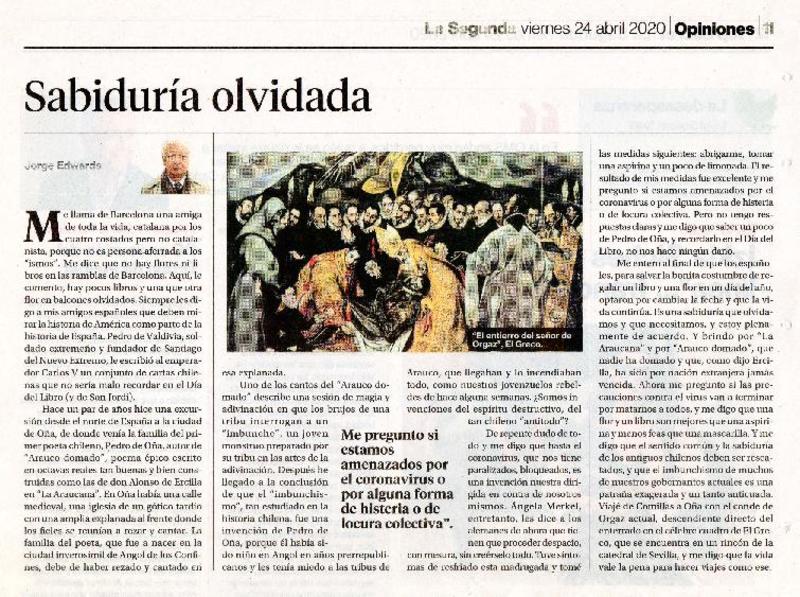 Sabiduría olvidada [artículo] Jorge Edwards.
