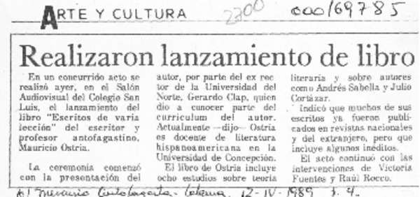 Realizaron lanzamiento de libro [artículo].