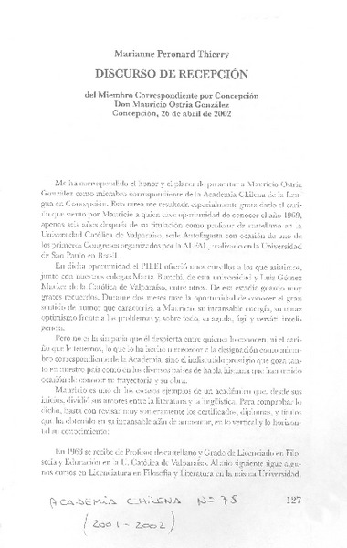 Discurso de recepción [artículo] Marianne Peronard Thierry.