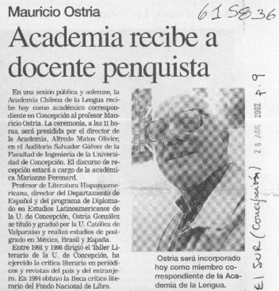 Academia recibe a docente penquista [artículo]