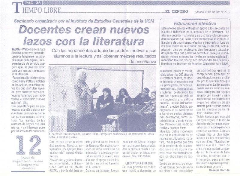 Docentes crean nuevos lazos con la literatura [artículo] Vanessa Garrido.