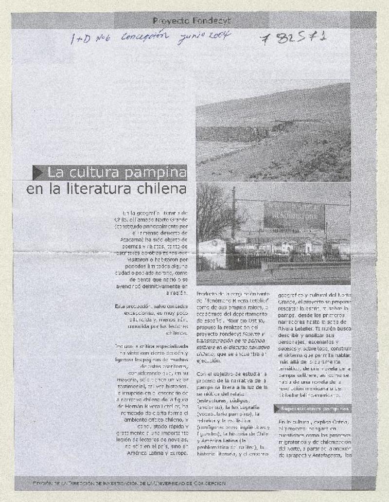 La Cultura pampina en la literatura chilena. [artículo]