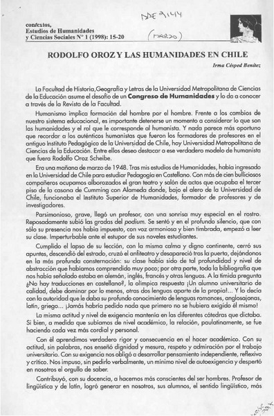 Rodolfo Oroz y las humanidades en Chile [artículo] Irma Césped Benítez.