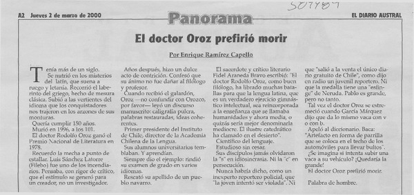 El doctor Oroz prefirió morir [artículo] Enrique Ramírez Capello