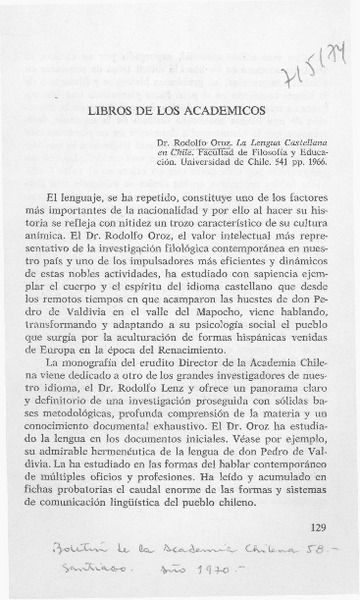 Autores chilenos - Oroz Scheibe, Rodolfo - Lengua castellana en Chile