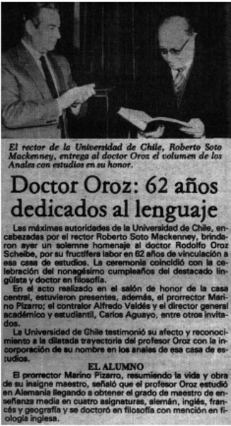 Dr. Rodolfo Oroz cumplió medio siglo de Doctorado. [artículo]