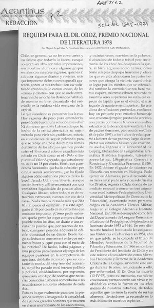 Requiem para el Dr. Oroz, Premio Nacional de Literatura 1978 [artículo] Miguel Angel Díaz A.