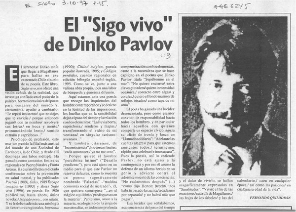 El "Sigo vivo" de Dinko Pavlov [artículo] Fernando Quilodrán.