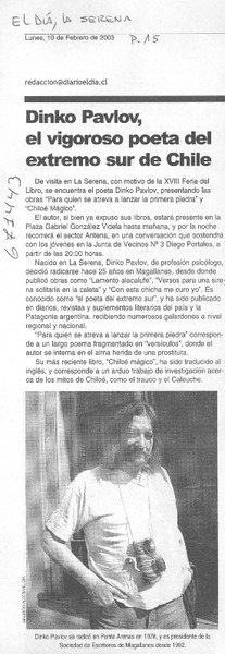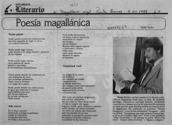 Dinko Pavlov, el vigoroso poeta del extremo sur de Chile. [artículo]