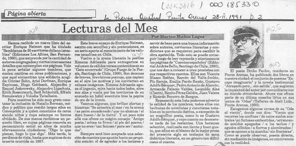 Lecturas del mes [artículo] Marino Muñoz Lagos.