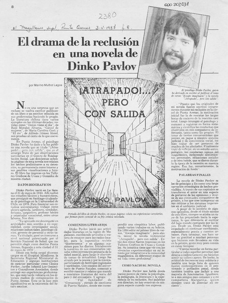 El drama de la reclusión en una novela de Dinko Pavlov [artículo] Marino Muñoz Lagos.