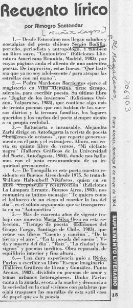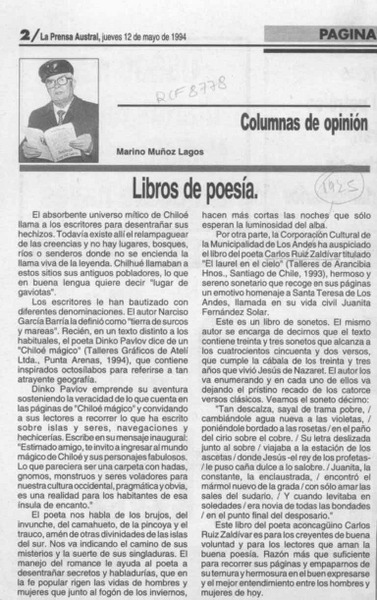Libros de poesía [artículo] Marino Muñoz Lagos.
