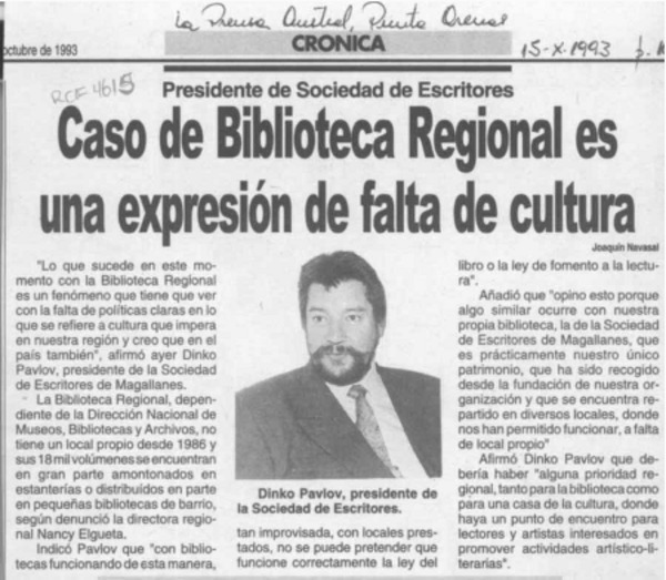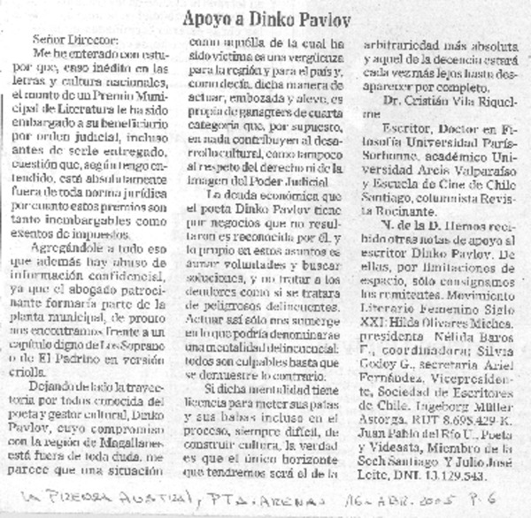 Apoyo a Dinko Pavlov [artículo] Cristián Vila Riquelme