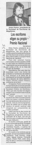 Los escritores eligen su propio Premio Nacional [artículo] Elías Barticevic.