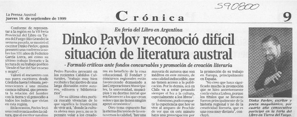 Dinko Pavlov reconoció difícil situación de literatura austral [artículo]
