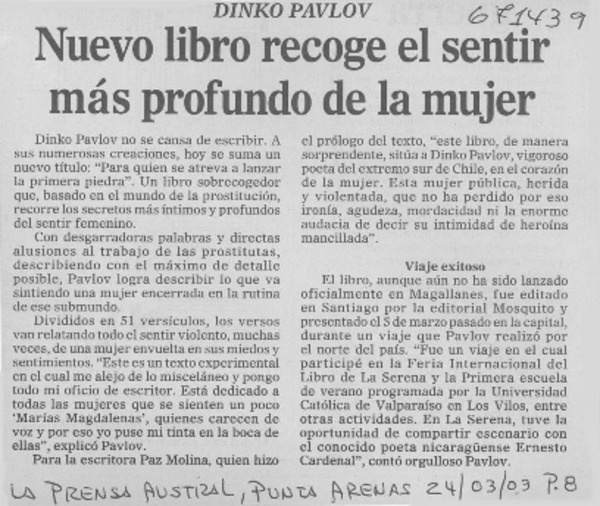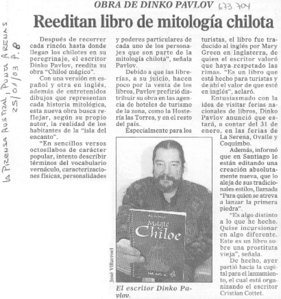 Dinko Pavlov de Magallanes [artículo] Juvenal Ayala.