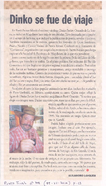 Dinko se fue de viaje [artículo] Alejandro Lavquen.
