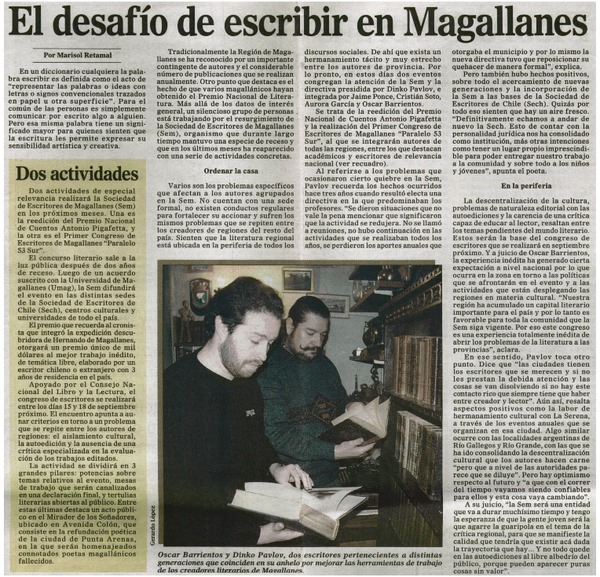 El desafío de escribir en Magallanes [artículo] Marisol Retamal González.