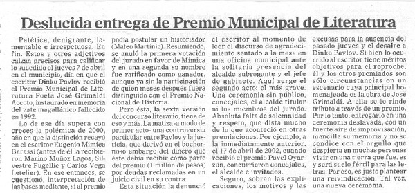 Deslucida entrega de Premio Municipal de Literatura [artículo]