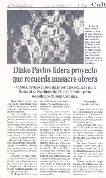 Dinko Pavlov lidera proyecto que recuerda masacre obrera [artículo].