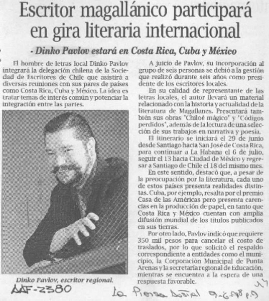 Escritor magallánico participará en gira literaria internacional [artículo].