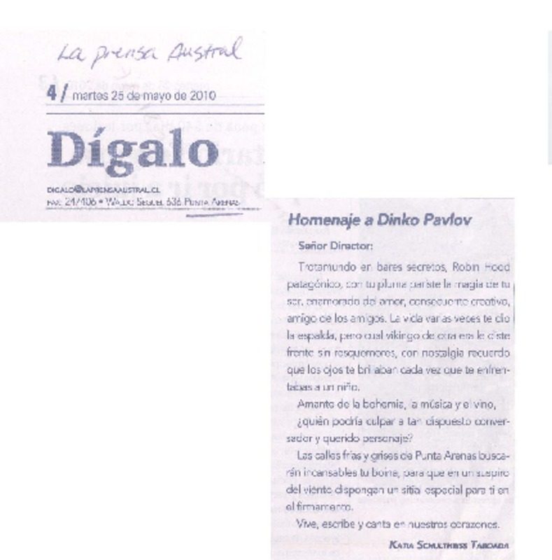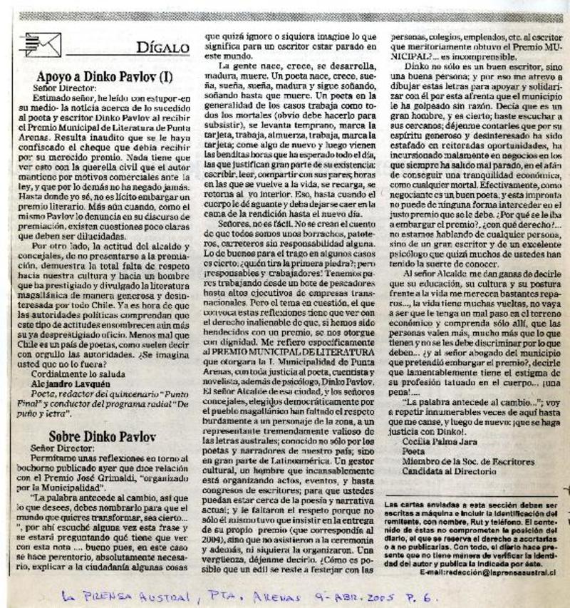 Apoyo a Dinko Pavlov [artículo] Cecilia Palma Jara.