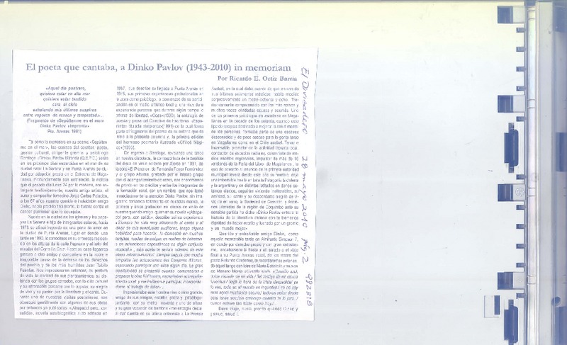 Pesar por muerte del destacado poeta nacional Dinko Pavlov [artículo] Lionel Varela.