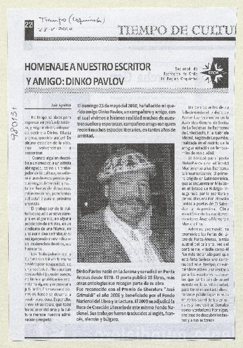 Homenaje a nuestro escritor y amigo Dinko Pavlov [artículo] : Luis Aguilera.