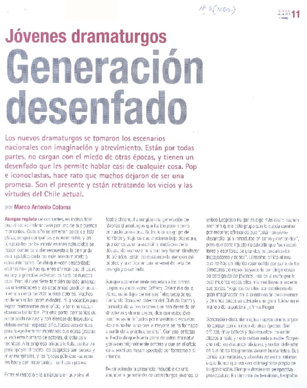 Generación desenfado [artículo] Marco Antonio Coloma.