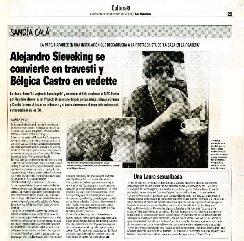 Alejandro Sieveking se convierte en travesti y Bélgica Castro en vedette [artículo] Javier García.