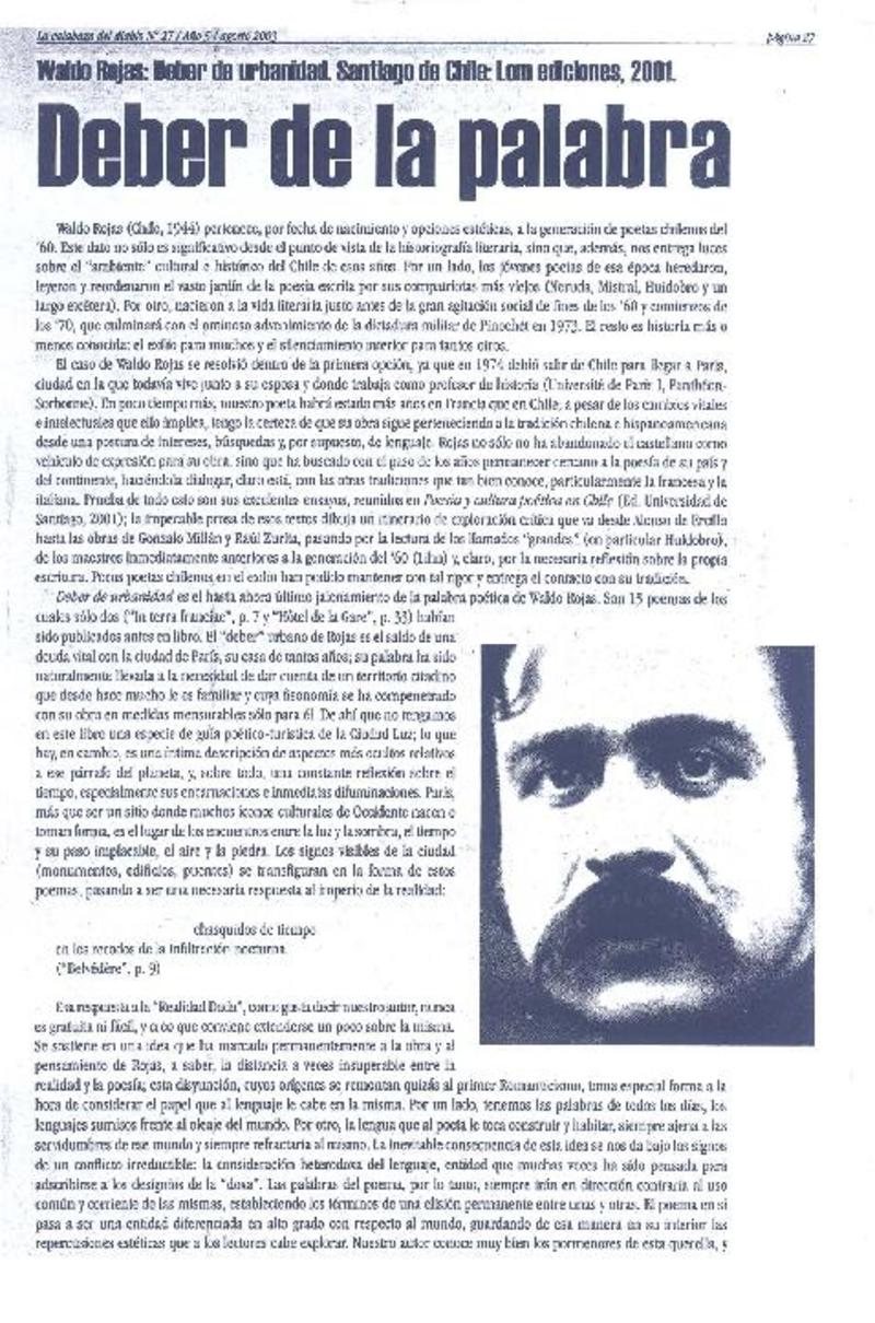 Autores chilenos - Entrevistas - Rojas, Waldo - Deber de urbanidad