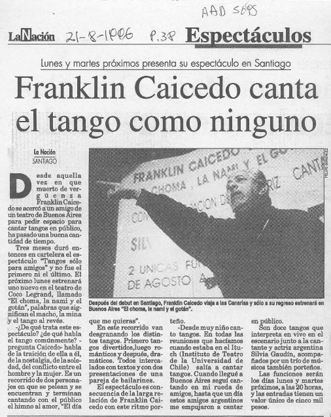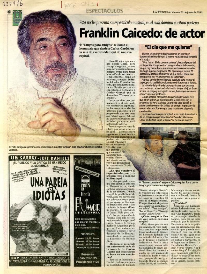 Franklin Caicedo canta el tango como ninguno [artículo].