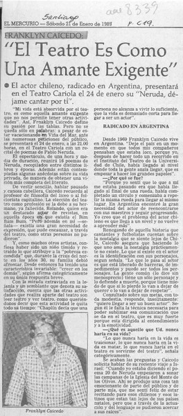 Franklin Caicedo, de actor a "cantor" [entrevista] [artículo] : Juan Carlos Maya.
