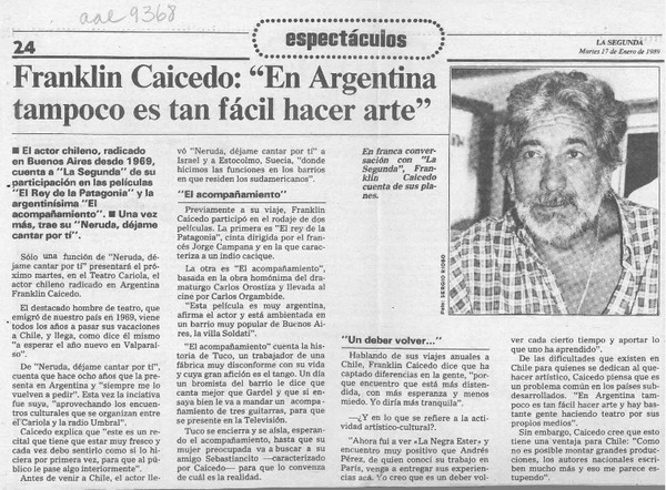 Autores chilenos - Caicedo, Franklin - [entrevista]