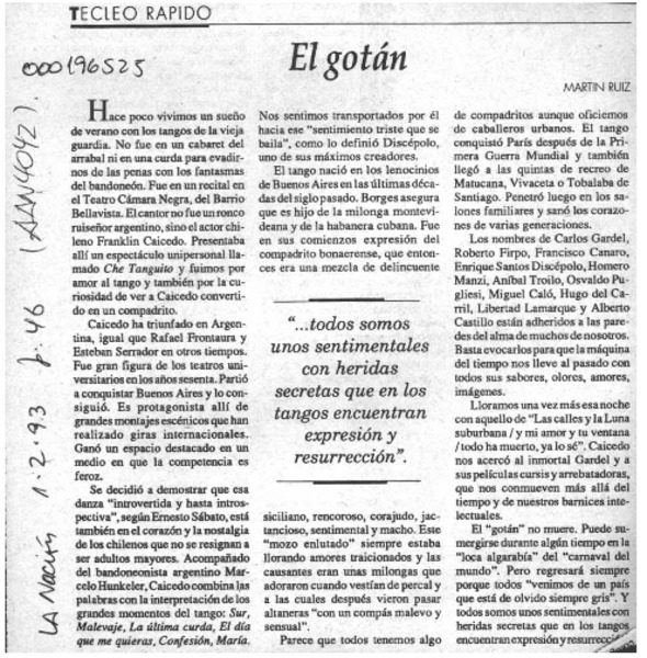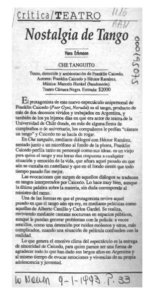 Nostálgico y talentoso resulta "Che Tanguito" [artículo] Italo Passalacqua C.