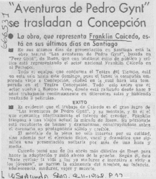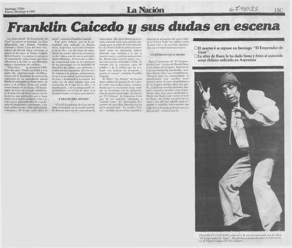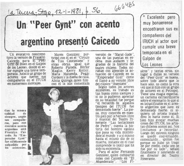 Un "Peer Gynt" con acento argentino presentó Caicedo. [artículo]