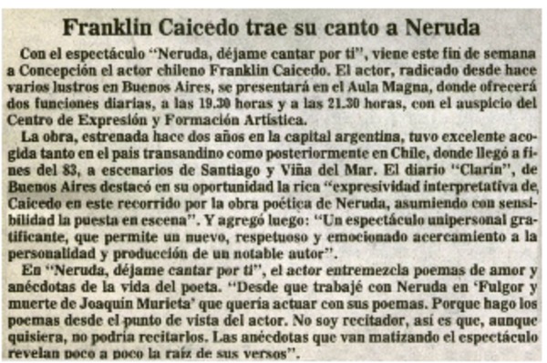 Franklin Caicedo trae su canto a Neruda. [artículo]