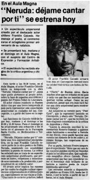 Neruda, Pablo - Autores chilenos - Neruda, déjame cantar por tí - [entrevista] - Caicedo, Franklin