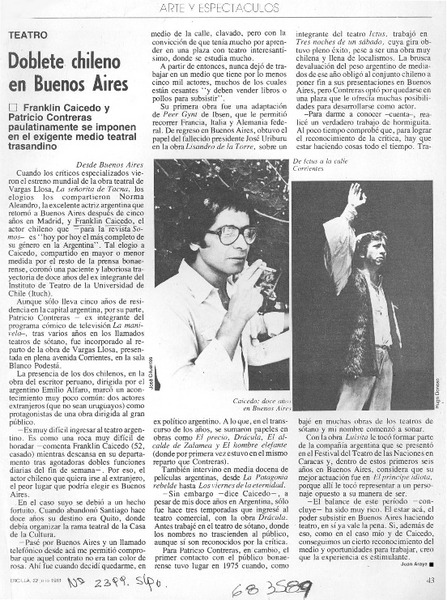 Doblete chileno en Buenos Aires [artículo] Juan Araya.
