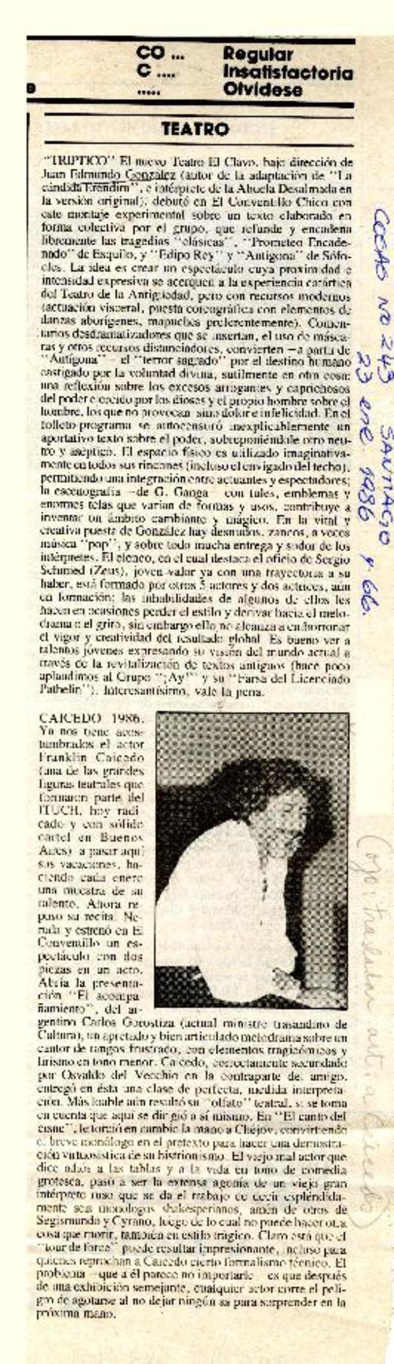 Autores chilenos - Caicedo, Franklin - González, Juan Edmundo - Tríptico