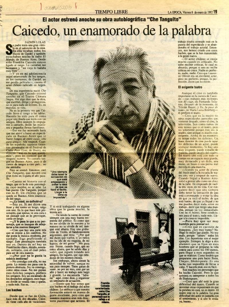 Autores chilenos - Caicedo, Franklin - Entrevistas - Che tanguito - Diez, entre el cielo y el infierno, El