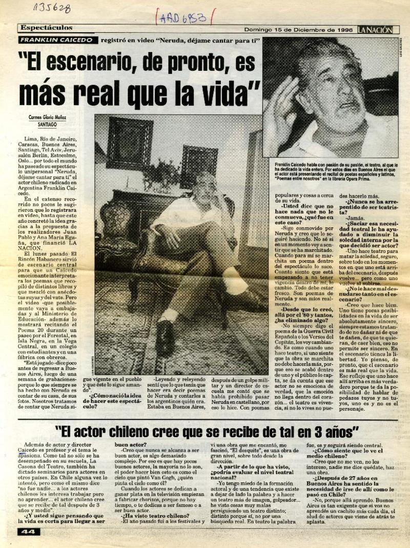 "El escenario, de pronto, es más real que la vida" [entrevista] [artículo] : Carmen Gloria Muñoz.