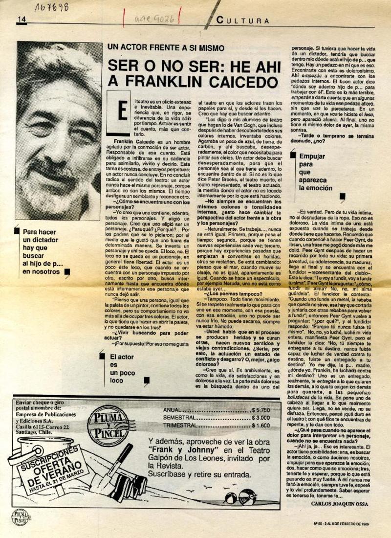Ser o no ser, he ahí a Franklin Caicedo [artículo] Carlos Joaquín Ossa.
