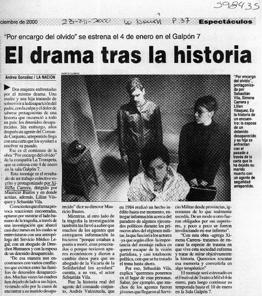 La musa del general reaparece en las tablas [artículo] Pedro Bahamondes Ch.
