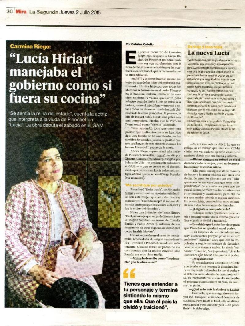 "Lucía Hiriart manejaba el gobierno como si fuera su cocina" [entrevista] [artículo] : Catalina Cabello.