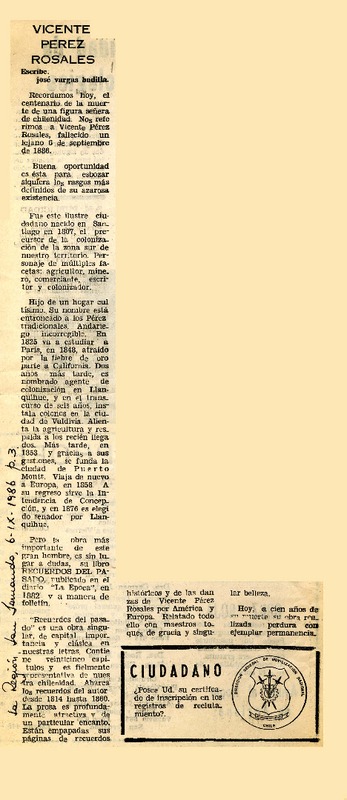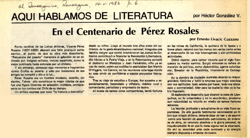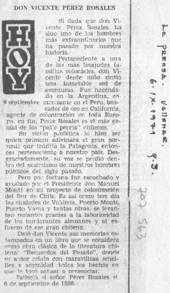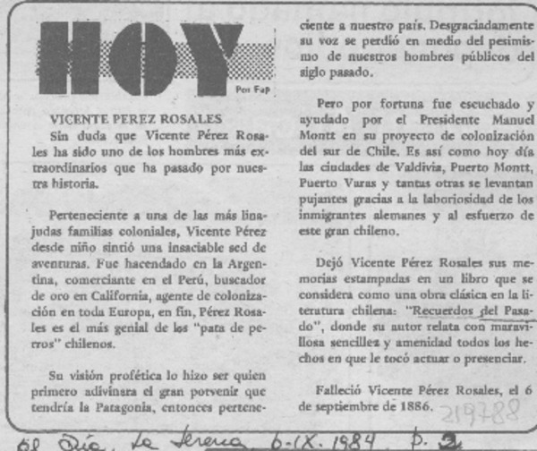 Hoy: Pérez Rosales. [artículo]