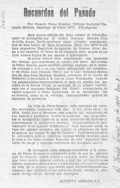 Recuerdos del pasado [artículo] Claudio Solar.