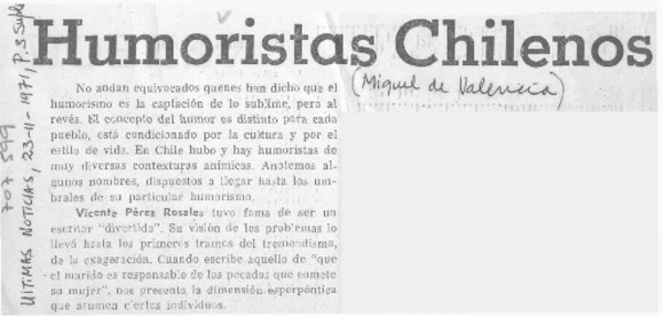 Humoristas chilenos [artículo] Miguel de Valencia.