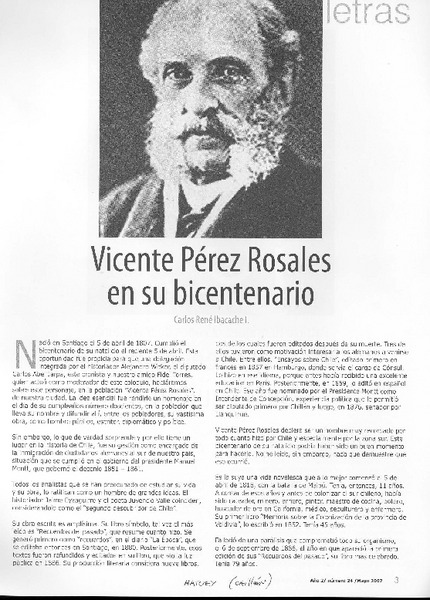 Vicente Pérez Rosales, un siglo después de su muerte [artículo] Pablo Cassi.